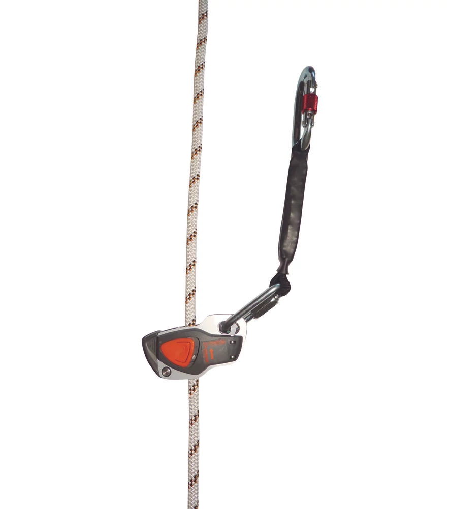 - Vezérelt zuhanásgátló tartószerkezetenfonott kötél ø 10,5 mm - A kötélen blokkoló - AM002-es karabinerrel ellátott kötélfeszítő
