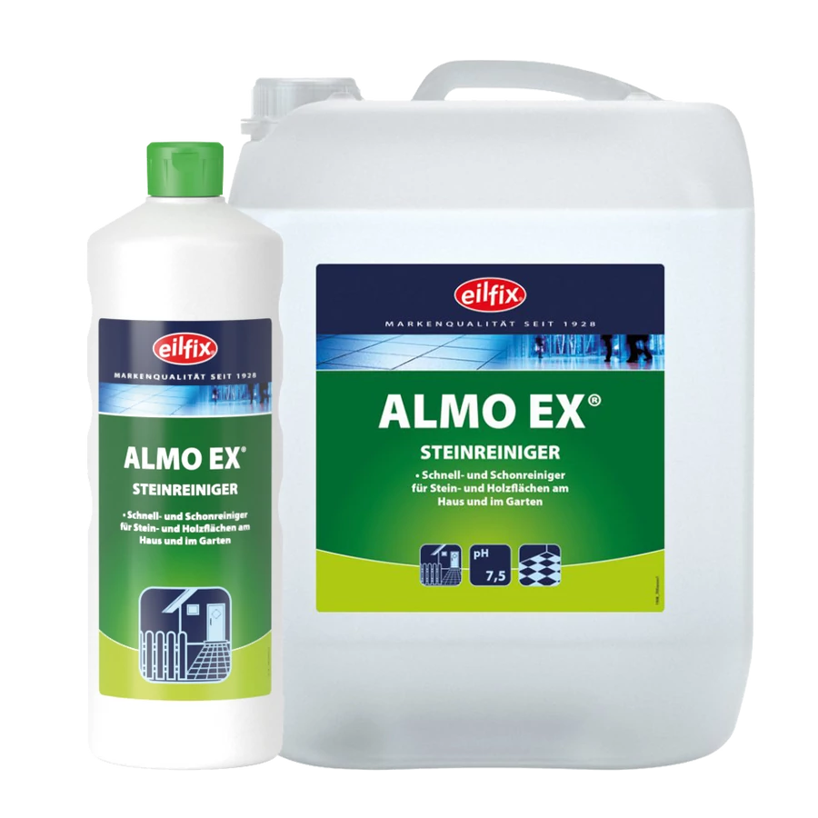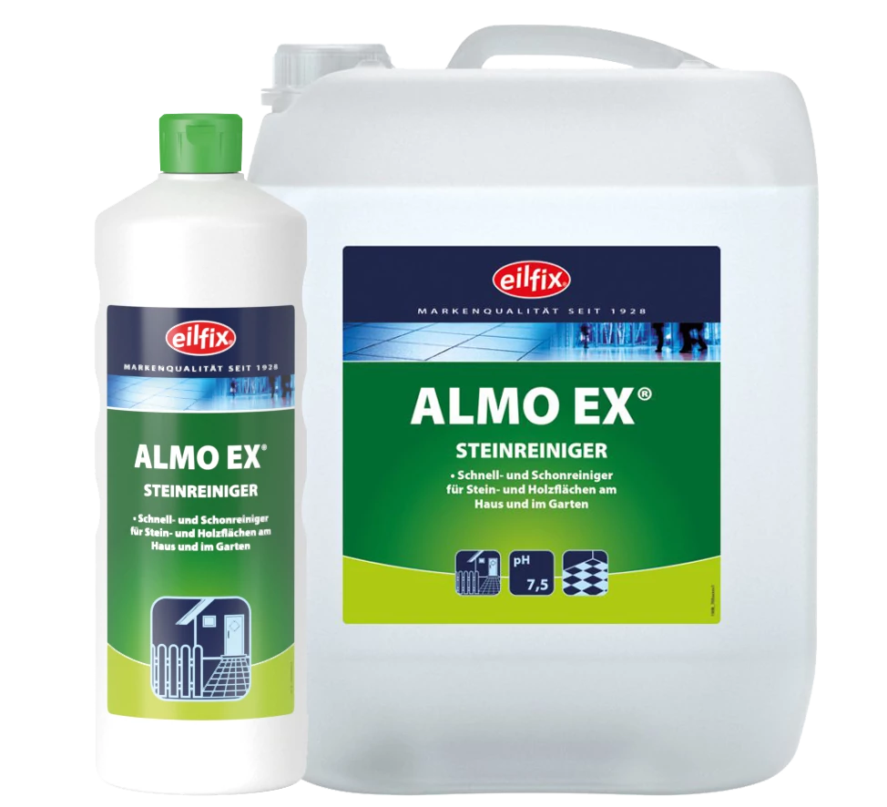 Az Eilfix Almo-EX kőtisztító gyors és gyengéd tisztítószer kő-, fa- és műanyag felületekre. Alaposan eltávolítja a makacs lerakódásokat és megakadályozza az új szennyeződések kialakulását.